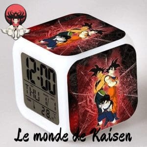 | Réveil Goku Super Saiyan | 15×15 cm | Goku en transformation Super Saiyan | Alarme, lumière LED |