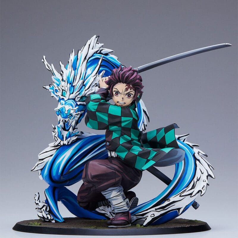 Aniplex nous présente une splendide statuette de Tanjiro Kamado, illustrant parfaitement le Souffle de l’Eau. Ce sont les Vicissitudes de la Vie, le dixième Mouvement, qui y sont représentées.