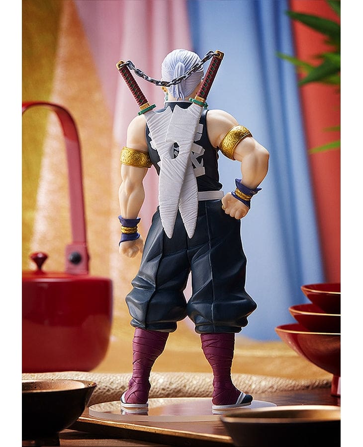 Cette incroyable figurine Pop Up Parade met en avant le Pilier du Son, Tengen Uzui. Il porte sa tenue iconique, une variation sans manches et turquoise foncé de l’uniforme des pourfendeurs de démons.