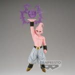 Majin Buu lève un bras en l’air, générant une boule de Ki violette symbolisant sa grande puissance destructrice. Son visage arbore un large sourire confiant et perfide, témoignant de sa nature maléfique et de son goût pour la dévastation. Cette expression et les détails ajoutent à la figurine un rappel du tempérament imprévisible et destructeur du personnage.