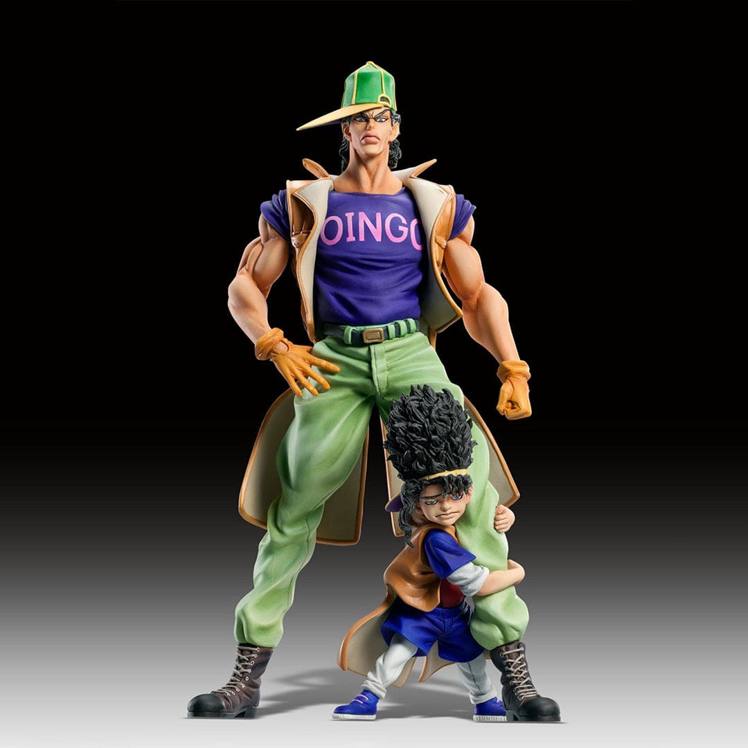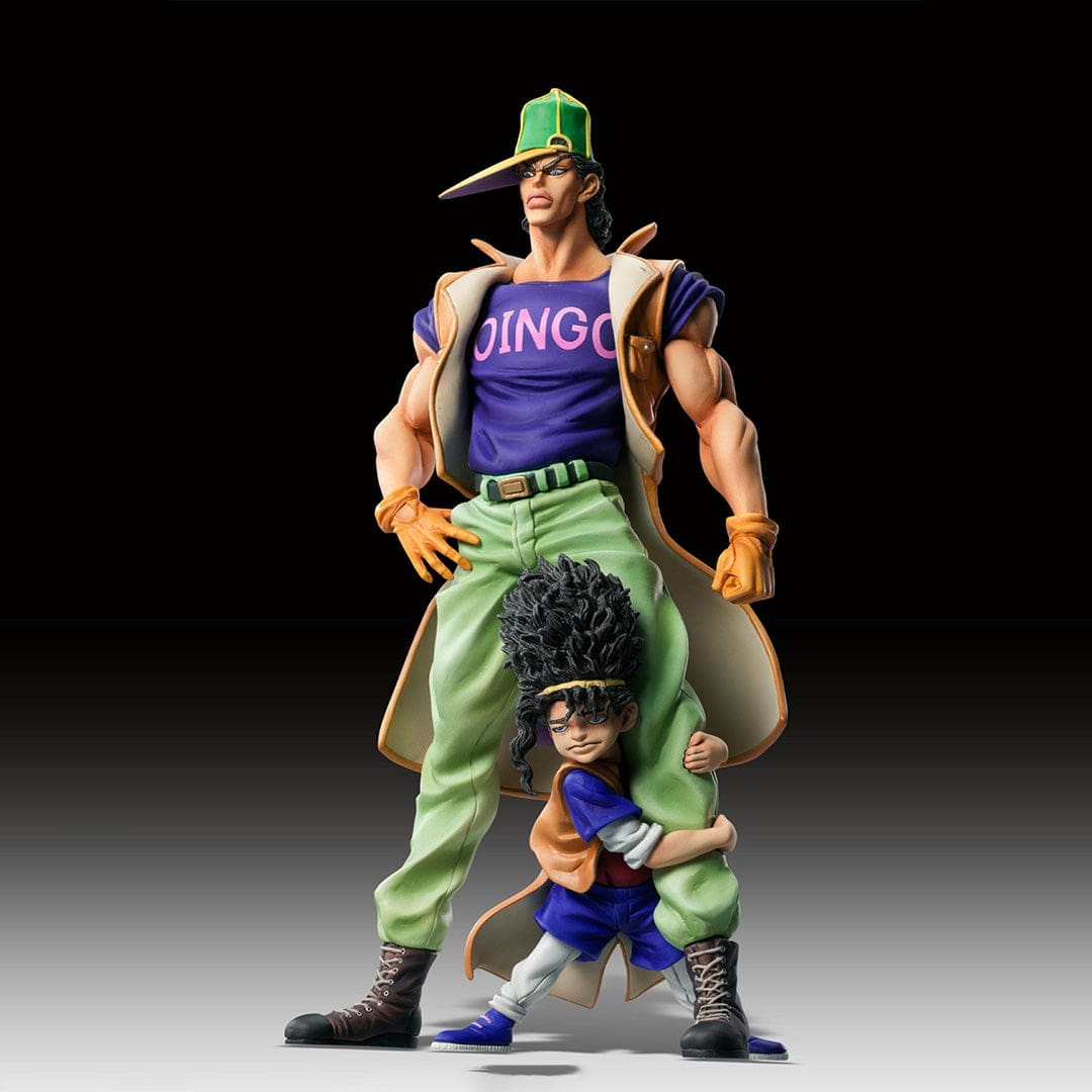 Oingo et Boingo sont des adversaires connus de Jojo’s Bizarre Adventure, et cette figurine les met en valeur de manière exceptionnelle. Boingo, l’enfant égyptien avec sa fameuse coiffure afro, est accroché à la jambe d’Oingo, grand et imposant, prêt à tout pour atteindre ses objectifs.