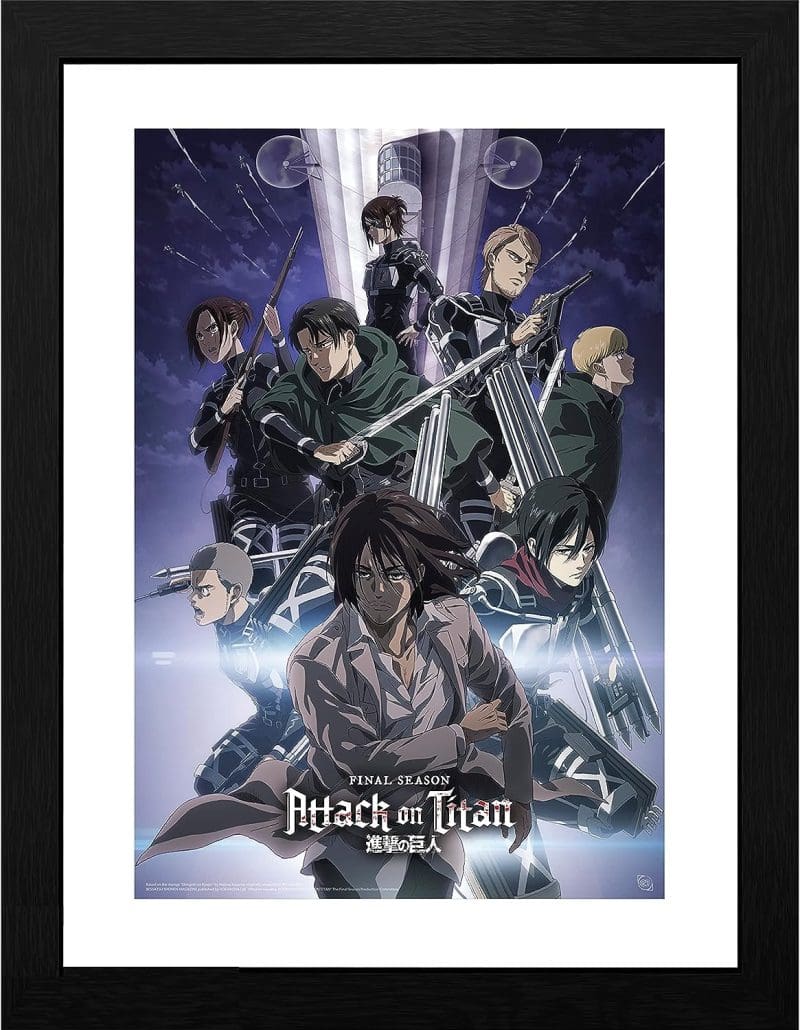 Les guerriers s’élancent pour l’ultime bataille dans la saison 4 de l’Attaque des Titans. Les membres restants du Bataillon d’Exploration sont magnifiquement illustrés sur ce poster encadré de L’Attaque des Titans proposé par GBEye!