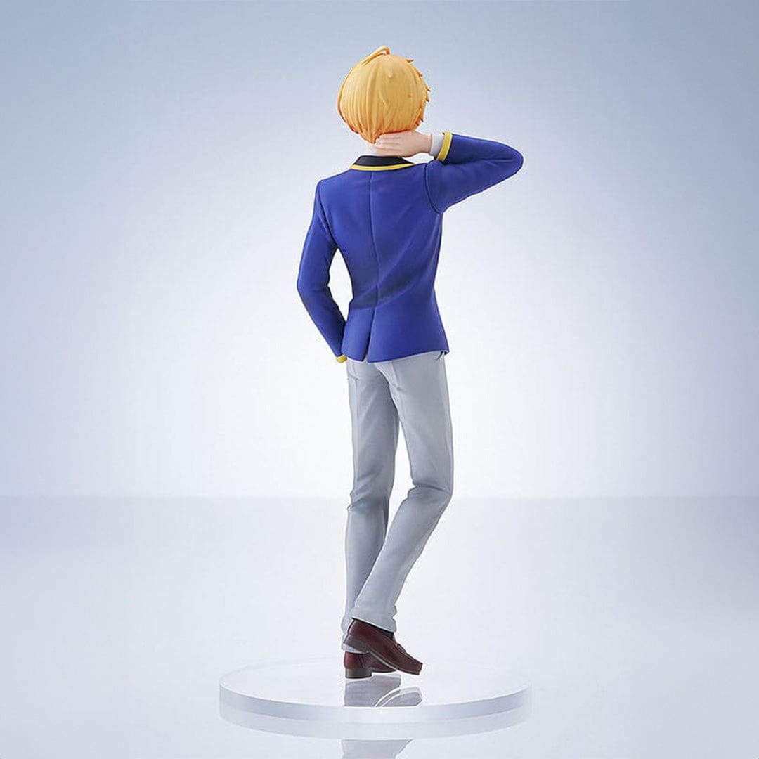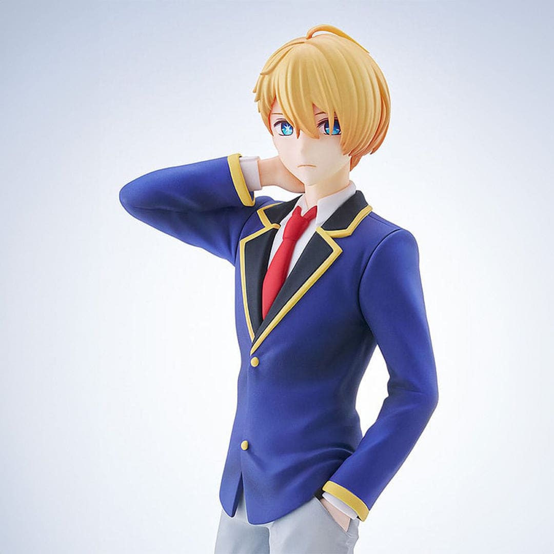 Sur cette figurine, Aqua s’anime avec une posture charmante, une main doucement posée sur sa nuque, émanant une aura envoûtante. Habillé d’une élégante veste bleue et d’un pantalon gris, il reflète tout le charme et l’élégance du personnage principal de Oshi no Ko.