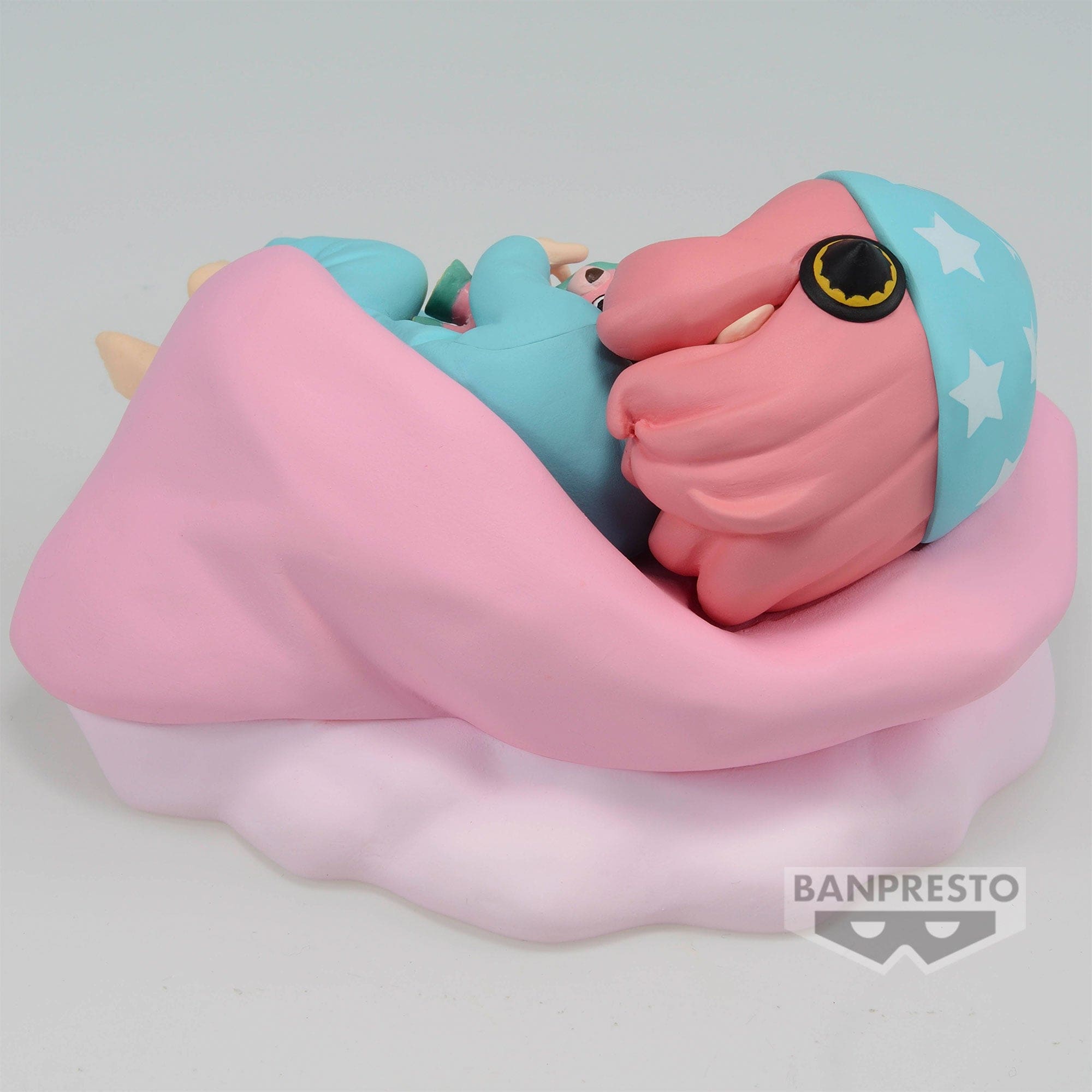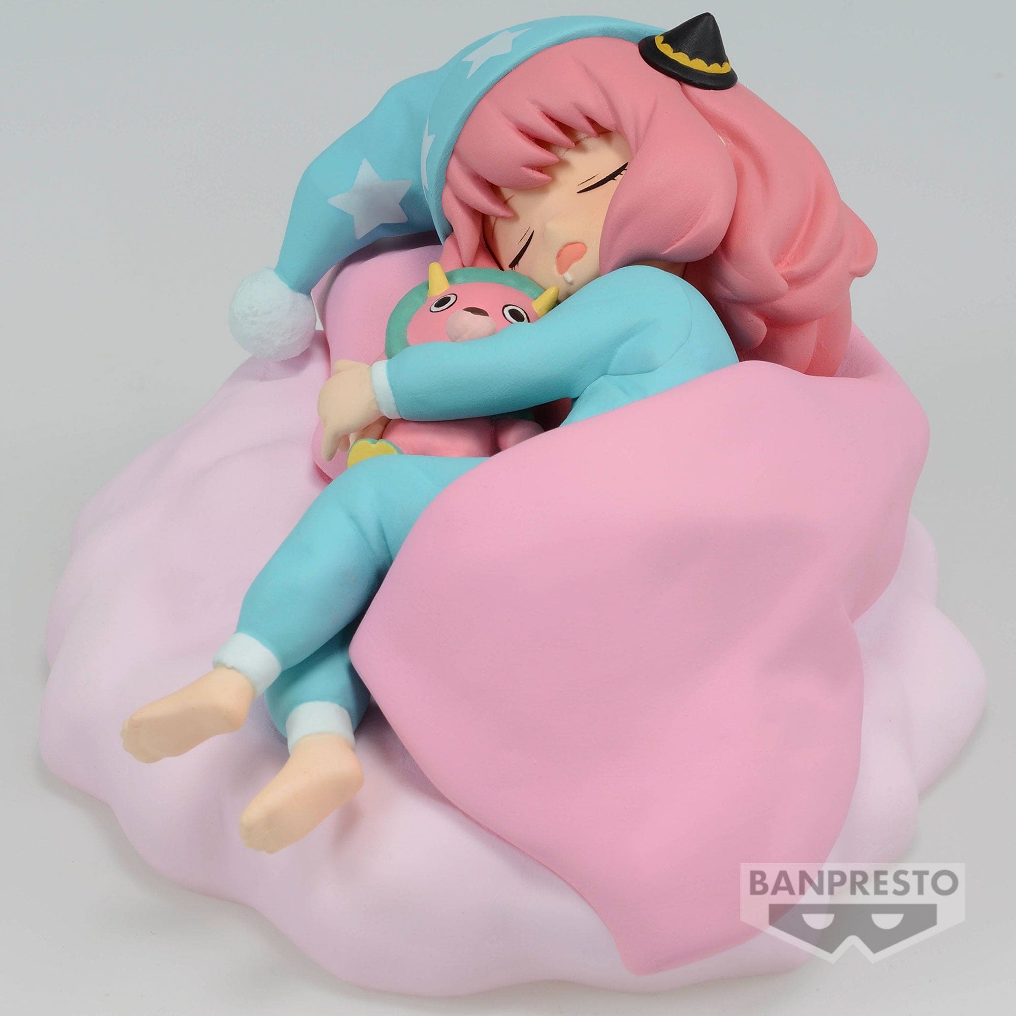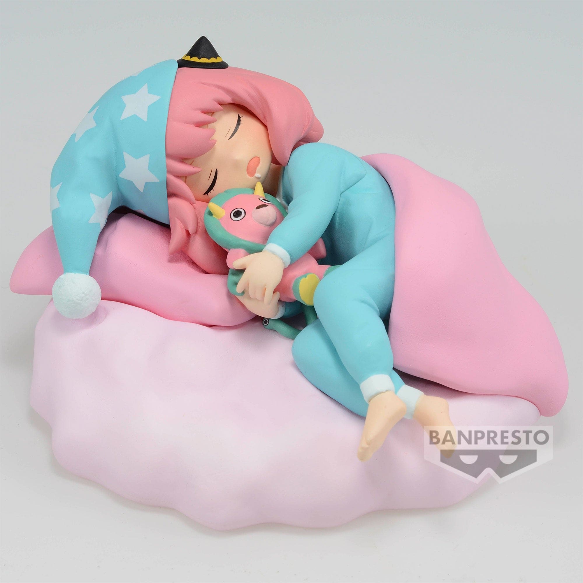 Cette figurine d’Anya Forger incarne l’innocence de l’enfance. Anya est habillée en pyjama, les yeux clos, plongée dans un sommeil serein. Elle serre affectueusement sa peluche Chimera, dévoilant son attachement à ce doux compagnon. Couchée sur un petit nuage rose, elle semble dériver dans un monde de rêves.